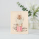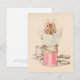 Flat note card. Mouse sitting on a spool of thread reading the paper.