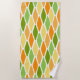 Dieses Strandtuch ist in einem modernen Design aus der Mitte des Jahrhunderts mit geflammten Diamanten in Gelb-, Orange- und Grüntönen gehalten.