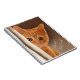 Entzückendes flaumiges Ingwerkätzchen, das von hinten einen Sahnevorhang lugt.