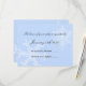 Imprimé sur un carton métallique chatoyant avec un arrière - plan bleu doux et des flocons de neige blancs. Cette belle région merveilleuse d'hiver RSVP se coordonne parfaitement avec mon faire-part de mariage de flocon d'hiver.
