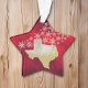 Cet ornement de vacances unique fera un merveilleux cadeau de gardien pour quiconque aime ou aspire à l'état du Texas! Il présente une image de l'état du Texas trempé en or devant un jet de flocons de neige en or orné. L'image est placée sur un dégradé profond arrière - plan rouge de Noël. L'arrière de l'ornement a les mêmes flocons de neige rouge arrière - plan et or, et un champ de texte pour vous de customiser. Merci à ClipArtBrat pour le graphisme utilisé dans ce design.