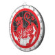Ce symbole de lion rouge, blanc et noir yin et yang fait un tableau de fléchettes attrayant et unique. Un bon tableau de fléchettes pour entreprise mixte !