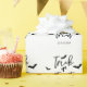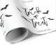 Mit diesem modernen Schwarz-Weiß-Design wrappen Sie Ihre Halloween-Geschenke im Stil. Mit Trick oder Treat Script Typografie mit Fledermaus-Silhouetten fügt dieses minimalistische Packpapier eine festliche und dennoch raffinierte Touch hinzu. Ein personalisierbarer Textbereich darunter lasse Ihnen, einen Namen, eine Grußbotschaft oder eine persönliche Nachricht einzufügen, die sich perfekt für Gastgeschenke, Saisongeschenke oder besondere Urlaubserlebnisse eignet.