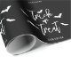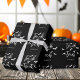 Geben Sie Ihren Halloween-Geschenken einen kühnen und festlichen Look mit diesem schwarzen Verpackungspapier mit Trick- oder Treat-Schrift-Typografie und Fledermäusen-Silhouetten in Weiß. Das moderne, minimalistische Design zeichnet sich durch sein schönes Design aus, während der personalisierbare Textbereich darunter einen Familiennamen, Gruß oder eine benutzerdefinierte Nachricht hinzufügen kann. Ideal für Gastgeschenke, saisonale Leckereien oder besondere Urlaubserlebnisse.