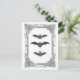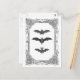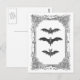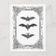 Eine Vintage Abbildung von drei Fledermäusen ist in einem extravaganten Vintagen Rahmen gerahmt, um dieses große schwarz-weiße Halloween, oder jederzeit, Postkarte zu machen.