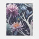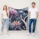 this pretty fleece blanket is coveredin a floral design in soft shades of pink, blue, green and ivory,