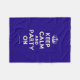 Basierend auf dem ursprünglichen Behalt Calm und ... poster dieser Creme und blau Behalt Calm und Party On Fleece Blanket verfügt über einen maßgeschneiderten Schriftart, dass eng mit dem Original.