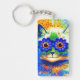 Porte - clé avec la peinture animale de Louis Wain Cat Flower Eyes (1860-1939). Un chat arc-en-ciel grince largement. Des fleurs bleues recouvrent ses yeux. Un cadeau merveilleux pour l'art amoureux des chats et anglais.