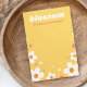 Carte d'affichage de bijoux avec fleurs de fraise blanche sur un arrière - plan jaune et nom de votre entreprise ou de votre design dans une police rétro.