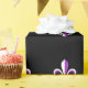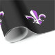 Mutiges lila und weißes Muster Fleur de Lys auf schwarzem Hintergrund stellt dieses eine große Verpackung für jede Anlässe her.