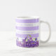 Le Fleur-de-le-Mois et la pierre porte-bonheur pour février sur une tasse rayée. La paire de fleur et de gemme pour février est la violette et l'améthyste.