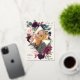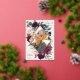Élégant faire-part de graduation de photo florale présente une photo verticale dans un cadre en forme de diamant de fleurs d'aquarelle et de feuillage dans des tons riches de rose rose poussiéreux, de prune bordeaux violet, de vert sauge, et de bleu foncé poussiéreux avec garniture rose en feuille d'or. Personnalisez avec le nom de votre diplômé, l'année de classe et l'école. Ajoutez un message personnel à l'arrière, ainsi qu'une photo supplémentaire.