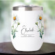 Fleur de mois de naissance Avril Vin de marguerite avec une illustration d'une fleur marguerite. Sous la fleur, le nom est écrit dans une police de script élégante. Sous le nom, il indique "Avril - Marguerite", indiquant que le mois de naissance est Avril et la fleur de naissance est la marguerite. Il s'agit d'un cancre de vin personnalisé, créé comme un cadeau réfléchi pour quelqu'un né en avril.