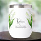 Avec une illustration du lis des fleurs de la vallée. Sous les fleurs, le nom est écrit dans une police de script gracieuse. Sous le nom, il indique "Mai - Lily de la Vallée", indiquant que son mois de naissance est mai et sa fleur de naissance est le lis de la vallée. Il s'agit d'un cancre de vin personnalisé, customisé comme un cadeau réfléchi pour quelqu'un né en mai.