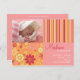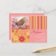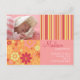 faire-part de naissance photo rose et orange "Flower Fizz". Personnalisez ce modèle de carte postale moderne et élégant avec la photo de votre petite fille et les détails pour une faire-part de naissance unique.