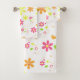 Fleur de style hippy marguerite avec Pois et Coeurs Transformez votre salle de bain en votre oasis personnelle avec une serviette personnalisée parfaite pour vous sécher dans le style. Dimensions : comprend une serviette de bain de 30 po x 60 po, une serviette de 16 po x 28 po et un linge de 13 po x 13 po Matière : devant est un mélange de polyester, dos est 100 % coton