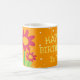 Surprenez vos amis ou membres de votre famille à l'occasion de leur anniversaire avec une tasse à café. Une tasse à fleurs mignonnes est idéale pour un cadeau d'anniversaire. Étendez vos souhaits d'anniversaire et l'amour, partagez leur bonheur ensemble lors de ces occasions spéciales avec une carte de voeux d'anniversaire aussi. Le design : - couleur orange arrière - plan sur mug à base de blanc, conçu avec 3 fleurs mignonnes, groupe d'étoiles blanches comme décorations et avec des mots de Joyeux Anniversaire pour vous. Toutes ses lignes sont réglables, redimensionnées ou déplacent sa position à votre goût.