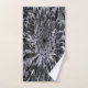 Ce kit de serviettes de bain comprend une serviette de bain, une serviette à main et un linge de toilette et dispose d'une fleur en dahlia noir et gris aux accents blancs.