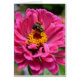 mignonne petite bourde abeille profiter d'une journée au soleil sur une zinnia rose