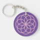 Porte - clé acrylique à double face avec design de fleurs rose et violet.