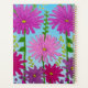 Jolie fleur dessinée en rose vif sur un arrière - plan bleu ciel.