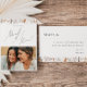 Voici notre fleur sauvage d'automne boho stupéfiant | photo carte d'honneur, qui embrasse un design simple et moderne reflétant la beauté de la nature. Doté de fleurs d'aquarelle séchée pressée et de feuilles en terre cuite, il saisit l'essence des teintes orangées brûlées d'octobre, créant un design minimaliste mais classique qui respire la chaleur et le charme. Le design a une touche fantaisiste d'élégance qui inspire une délicate atmosphère vintage, où les feuilles verts sauge, les accents de cuivre rouille et les tons de terre fleurie créent un style unique et inoubliable. Offrez-vous la beauté de votre journée spéciale avec un produit qui capture un design minimal mais unique et vous préparera le décor pour une expérience mariage vraiment mémorable. Contactez-nous pour toute question sur le design, et laissez-nous vous aider à faire le mariage de vos rêves.