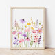Ce jeu d'imprimés doux présente mes fleurs sauvages d'aquarelle peints à la main dans les tons rose, violet avec des touches d'or.