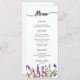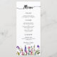Fleur sauvage d'aquarelle menu simple 3 plats mariage menu avec cap calligraphie, fleur sauvage d'aquarelle et salade, entrée et dessert modèle. Il y a aussi de la place pour les noms des mariés et des mariés et la date du mariage. Cette disposition exacte est également disponible avec des accents dorés.