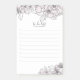 Notes postales florales personnalisées avec des fleurs à la main rose vif et une typographie de calligraphie. Ces notes post-it élégantes et féminines sont un excellent moyen d'organiser votre liste de choses à faire. Personnalisez en utilisant les champs fournis ou utilisez la fonction "Personnaliser supplémentaire" pour ajuster les polices, les tailles et, l'espacement si nécessaire.