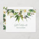Elégante fleurs blanches et arrière - plan blanc bouquet feuille vert, personnalisable carte postale certificat cadeau design.