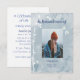 Customisez cet Invitation de service commémoratif Belle libellule bleue et fleurs blanches et votre photo 5x7 pour un service de mémoire