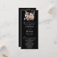 Présentez notre programme de mariage floral noir élégant! Avec un superbe agencement floral blanc et roux, vert, roux et gris, ce programme ajoute une touche de sophistication et de romantisme à toute cérémonie mariage. La partie avant du programme énumère les noms des couples, la date, le lieu et les cérémonies, tandis que la partie arrière énumère la fête de la mariée. La majorité du programme est dans une simple police blanche, ajoutant un élément classique et intemporel à la conception. Cependant, les mots Welcome, Ceremony, Bridal Party, et le mot "and" entre les noms des couples sont écrits dans une police de caractères décorative, créant un beau contraste saisissant contre l'arrière - plan noir. Ce programme est parfait pour les couples qui veulent ajouter une touche d'élégance florale à leur grand jour, tout en conservant un thème traditionnel et classique. Il se marie également bien avec le blanc ou le bleu comme couleurs mariages principales, ce qui en fait un choix polyvalent pour n'importe quel couple. Commandez maintenant et ajoutez une touche de sophistication à votre cérémonie de mariage!
