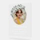 L'acrylique transparent dans la mémoire aimante signe avec la photo de votre être aimé à l'intérieur d'un ovale avec de jolies fleurs blanches et leur nom dans une police moderne. Beau panneau funéraire floral acrylique transparent honorant votre être aimé et personnalisé avec leur nom et photo à l'intérieur d'une forme ovale et orné de fleurs blanches imprimées. En mémoire d'amour signe acrylique personnalisée avec une photo avec un design floral blanc et vert pour un funéraire ou service commémoratif pour votre fille, soeur, femme, mère ou grand-mère.