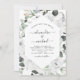 Fleurs blanches Roses et eucalyptus botanique Invitations de mariage de printemps ou d'été aquarelle - comprend une belle et élégante typographie de script avec des fleurs botaniques tropicales modernes et de la verdure pour la célébration spéciale du jour du mariage.