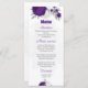 Fleurs royales romantiques violettes & blanches avec carte de menu mariage botanique feuille argent. Les détails de la parties scintillant sont simulés.