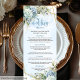 Fleurs bleues dorées modernes Menu Mariage or blan