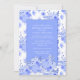 Jolie invitation à la douche nuptiale d'inspiration bleu délicieux faite dans un motif floral bleu et blanc. Une zone de texte bleu périwinkle, avec du texte blanc personnalisé, est prête à être personnalisée. Des fournitures de partie correspondant sont disponibles.