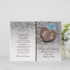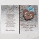 Fleurs sauvages bleues, coeur rouillé métallique avec monogramme sur bois rustique cérémonie de mariage et programme plié de fête avec un coeur métallique rouillé brun avec initiales clouées sur patiné panneau de bois grise et trois fleurs sauvages bleu aqua. Ce modèle à fleurs monogrammed est entièrement personnalisable et fait partie d'un ensemble ou d'une collection de mariages, parfait pour un mariage de grange d'été ou d'automne. Il faut le plier au centre. Choisissez seulement ce type de papier-valeur comme il se plie bien.