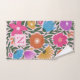 Cette serviette à main amusante et colorée présente un design floral dessiné à la main en magenta / rose fushia, orange, jaune doré, violet, bleu et vert sur un arrière - plan de couleur personnalisé (montré en rose clair). Le style artistique du design floral est presque craie - comme / pastels. Un modèle texte est inclus pour personnaliser avec un monogramme, ce qui en fait un grand cadeau! Nous avons des articles de toilette assortis ! *Oeuvre créée exclusivement par Orabella Prints
