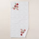 Belles fleurs roses et rouges sur motif damassé fleuri blanc