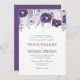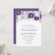 Elégante invitation à mariage floral violet et gris argenté. Une police de script formelle est jumelée à une police serif moderne pour un design invitation formel.