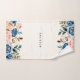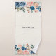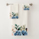 Serviette sertie d'une bordure de jolis roses roses et bleus et feuilles verts peints. Placez-vous sur un arrière - plan jaune clair.