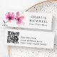 Élégant mini-carte de visite avec fleurs d'aquarelle rose et votre nom dans une élégante police serif. Ajoutez un code QR personnalisé au dos.