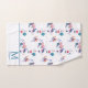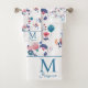 Cette serviette de bain personnalisée est décorée dans un style Folk Art fleuri. La motif est ornée de fleurs colorées de style Art folklorique et de baies carrelées sur un arrière - plan blanc. Un échantillon de monogramme initial est imprimé près du bas de chaque serviette et linge, que vous pouvez personnaliser pour inclure votre propre original personnalisé ou autre texte. Un nom est imprimé sous le monogramme initial dans une police de script turquoise élégante.
