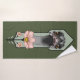 Un joli portrait d'autruche aux fleurs roses, le tout dessiné dans un style art déco, tout en vert