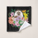 Un joli hérisson assis au milieu de fleurs d'été colorées sur un fond noir