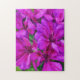 Mon œuvre d'art originale comportant ma photographie originale de fleurs de géranium rose foncé dans un jardin est sur ce joli puzzle, stylisé avec une technique de peinture à l'aquarelle pour un aspect artistique.