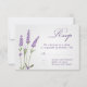 Belle lavande violette fleurs Mariage Réponse carte plat. Sur le dos de la carte - fleurs de lavande sur arrière - plan en bois clair.
