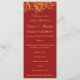 Un élégant programme de mariage doré, floral avec un bouquet de fleurs d'or et feuille au sommet sur une base rouge. Tous les détails des deux côtés de la carte peuvent être facilement personnalisés selon vos besoins. L'envers est muni d'un seul bouquet d'or en bas. Ce programme de mariage élégant et contemporain fait partie d'une suite de mariages complète, que vous pouvez voir en entier ici : https://www.zazzle.com/collections/gold_glitter_floral_sparkles_red_wedding-119325129141873468