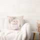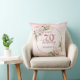 Célébrez 70 ans avec style avec cet oreiller doré rose scintillant. Avec des fleurs de peinture à l'eau rose poussiéreux, rose clair et rose saumon, une verdure luxuriante, des accents d'eucalyptus et un cadre doré, ce design boho, floral et bohème est un cadeau parfait pour un coussin de 70e anniversaire.